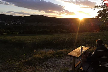 Wenn Sie am Steinweg entlang wandern, gelangen Sie an mehrere tolle Fleckchen, wo Sie innehalten und die Aussicht genießen können. Eines davon ist das "Sonnenbankerl" mit herrlicher Aussicht auf Berching.