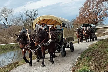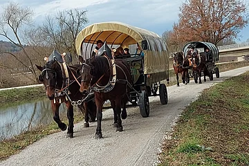 Die Planwagenfahrten können von Gruppen stundenweise zu den unterschiedlichsten Anlässen gebucht werden. Auch Mehrtagesfahrten sind möglich.