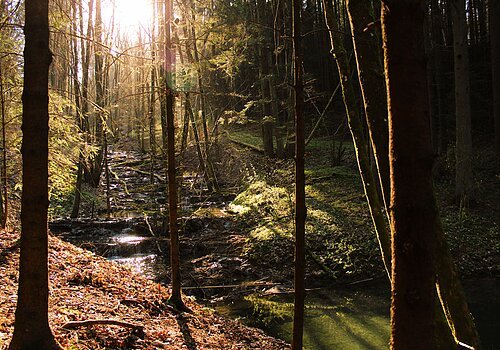 Zwischen Holnstein und Oening im Tal der Weißen Laaber schneidet sich ein Quellbach kaskadenartig in den Hangwald und bildet große Terrassen. Treppenförmig sprudelt er ins Tal hinab. Die ...