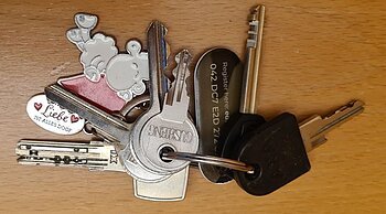 Schlüsselbund mit 6 Schlüssel und 2 Anhänger