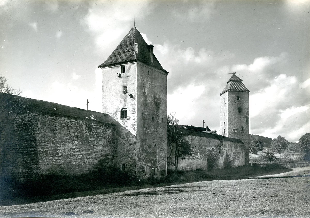 Dieser Turm ist der viertgrößte der Stadt und befindet sich innerhalb der begehbaren Wehrmauer zwischen Pulver- und Bettelvogtturm. Um 1811 erwarb ihn der Webermeister Johann Dexl, daher sein Name Dexlischer Turm, kurz Dachsenturm.