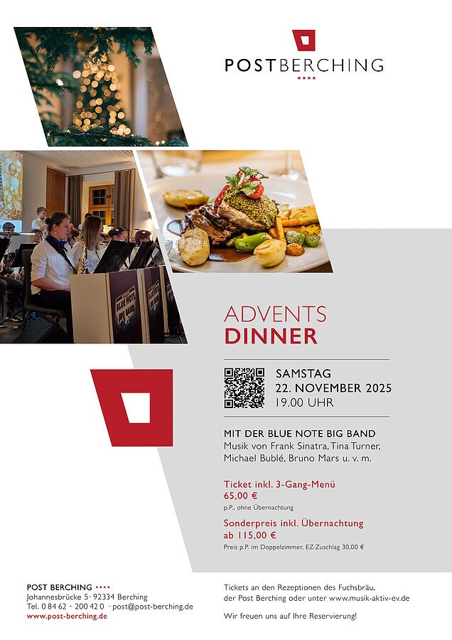 inkl. 3-Gang-Menü//Sonderpreis inkl. Übernachtung ab 115 Euro p.P. im Doppelzimmer/30 Euro EZ-Zuschlag