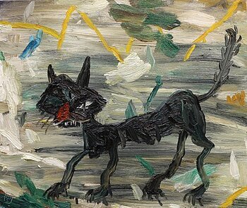 Bild 1: Matías Sánchez "Gata negra", 2020, Öl auf Leinwand, 46x55 cm, Foto Erich Spahn