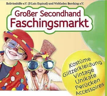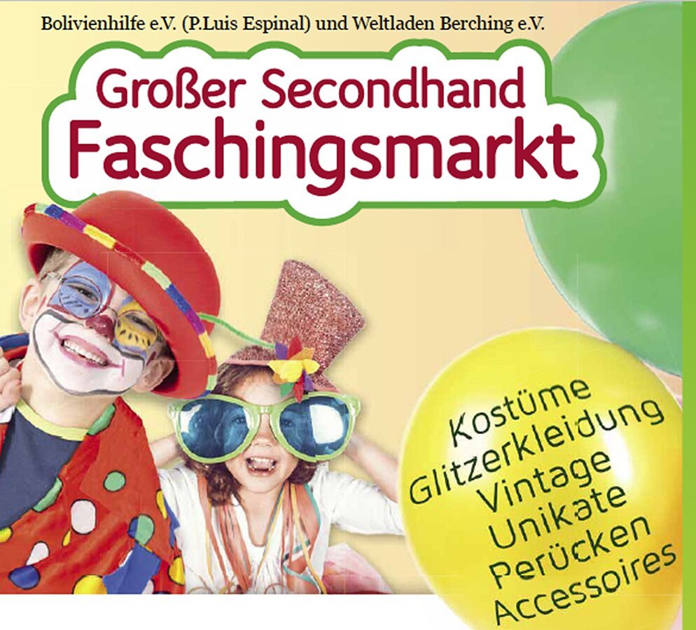 Gemeinsam mit dem Weltladen Berching e.V. und der Bolivienhilfe Berching  veranstaltet die aktion hoffnung in Berching wieder einen Secondhand-Faschingsmarkt. Große und kleine Faschingsfreunde erwartet eine Auswahl von mehr als 2.000 Kostümen und dazu passende Accessoires zu jedem Thema.