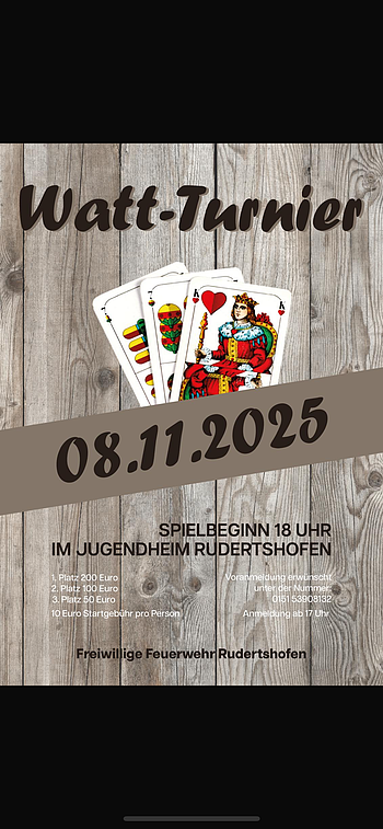 Die Feuerwehr Rudertshofen lädt herzlich zum Watt-Turnier ein!
