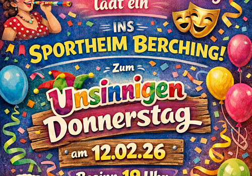 Der Frauenbund Berching lädt herzlich zum Weiberfasching in das Sportheim Berching ein. Tisch-/Platzreservierung unter Tel. 08462 27321
