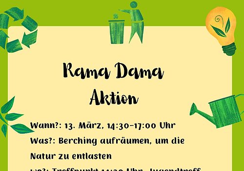 Der Jugendtreff Berching führt auch dieses Jahr wieder eine Rama Dama Aktion durch. Gemeinsam mit dem BUND Naturschutz, der Ortsgruppe Rappersdorf und Stadträten ziehen wir am 13. März nach der ...